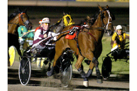 $NZ100,000 ROWE CUP Well known to Melbourne fans, Martina H NZ made up for a luckless run in the heats with a strong finishing burst to gain the upper hand over the favourite close to the line. It was the last racing appearance for the once mighty Lyell Creek NZ, which could finish only 8th. The old gelding had established an early break on all rivals for another Grand Circuit championship. Seven of the 15 starters were the progeny of Sundon USA. The top nine on points for the 2004/2005 Grand Circuit were: Lyell Creek NZ 13 from four starts; Allegro Agitato NZ 7 from five; Play On NZ 6 from four; Sammy Do Good 5 from 4; Gold N Gold NZ 5 from four; Paris Metro NZ 5 from two; Lost In The Park NZ 5 from three; Jasmyn’s Gift NZ 5 from two, Martina H NZ 5 from four and Sumthingaboutmaori 3 from five. In hindsight, the circuit belonged to Lyell Creek NZ, retiring after having won a total of 15 races on Australasian Grand Circuits, while stablemate Take A Moment NZ had run out of time in its comeback. It was also a good one for the sire Sundon USA. Australia had few positives to take from the series, with Sumthingaboutmaori (our best trotter) not having taken the next step up from that previous Inter Dominion, and actually performing so disappointedly when crossing the Tasman that it raises the question why it might not race well when far from home? |