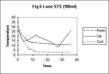 Five containers specifically designed for slow cooling of equine semen were evaluated with semen prepared according to the manufactures recommendations. Semen was extended at 370C to a concentration 20 X 106/ml and a total volume of 100 ml, or 200 X 106/ml and a total volume of 10 ml and allowed to equilibrate slowly to room temperature (~ 220C) over ~ 15 minutes. After the addition of the extended semen each container was subjected to one of three environmental tempertures: a) Room temperature, b) Heated environment (placed inside a sealed car in the sun) or 3) Cool environment (placed inside a refrigerator). Temperature of the extended semen was recorded (thermocouple- accurate to ± 0.050C) without opening or moving the containers, hourly for the first 12 hours and then every three hours for the next 24 hours. Progressive motility was recorded at the beginning and end of replicate. Two replicates were performed for each volume (10 and 100 ml) for semen stored under the three environmental conditions. The experiment was performed in February in southern Australia.