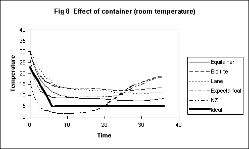 None of the containers performed well in the hot conditions. There was a wide variation from the ideal cooling rate with most containers, however with the exception of the Expecta Foal most performed well at room temperature for 20-24 hours.