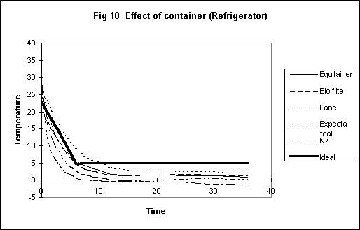 The results of this experiment suggest that some containers have more uniform cooling rates and stability than others and that environmental conditions have an important role in the ability of the containers to accurately cool extended semen. If containers are placed in areas such as cargo holds in buses they may become warm and conversely they may become cold in cargo holds of planes (McKinnon, 1996). The interplay of outside temperature and cooling container has enormous impact on the semen cooling rates and thus motility.