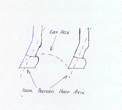On making a study of the well gaited and balanced Standard-bred it has been my experience that the horse needs to decide how its feet need to be dressed and should be shod with a plain shoe with good coverage of the base of the foot. I have found that when a horse is worked without shoes they will always wear their feet to the pastern angle. They will never wear the heels below the frog of the foot on either the front or hind feet. In fact if you work the horse until they have worn the hoof back to the sensitive tissue they will wear the hoof through the sole at the toe but will never wear the heels below the frog.