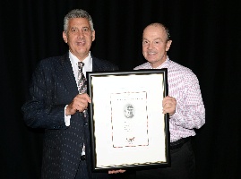 Emmy Mazzetti presents Mark Purdon with Living Legend status.