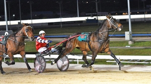 One of the last horses Doug trained was Going South, who was driven on a regular basis by Shelley Barnes, and when Martin retired from training he passed his racing colours of red with black and white hooped sleeves onto Barnes who has chances in tonight’s two feature races carrying the colours.