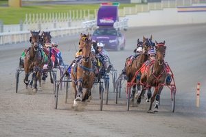 The New Zealand-bred eight-year-old prepared by Gary Hall snr, burst straight to the front and set a solid pace after a modest lead time of 37.9sec. The gelding, by Canadian sire Extreme Three and the eleventh foal out of Nuclear Princess, dashed over the final quarters in 28.5sec. and 27.8sec. and won by 4m from stablemate Tuas Delight ($7.50) who enjoyed the perfect sit behind the pacemaker throughout.
