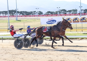 Claiming novice driver Jacob Duggan had the mare one-out and three-back and raced three-wide with cover from the 800m until being let-down at the 400m, where she sprinted home best to record a 5.3m win in 1:59.4s.