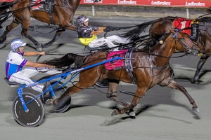 Again, starting favourite owing to her excellent local efforts to date, plus a kind draw, Thesunandthemoon showed versatility when leading all the way in the Garrards Horse & Hound Mares Open Pace in the hands of young reinsman Tom Callaghan.
